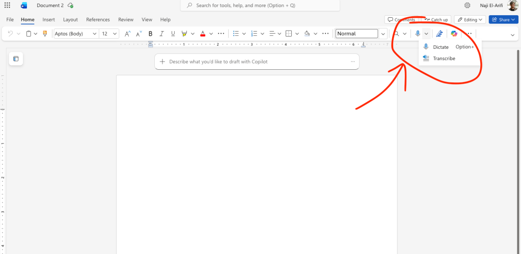 - The Processing: Upload the audio/transcript to your AI of choice (Gemini, ChatGPT, NotebookLM). I also sometimes use Microsoft Word on the web to transcribe the audio, which you can do from the web version and is very good. This way I have a standalone transcript file that can go anywhere or get stored locally.